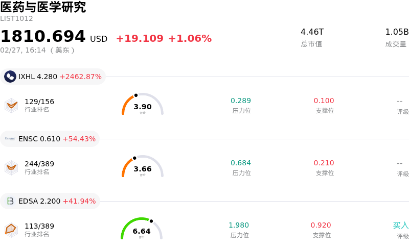 艾伯维 (ABBV) 收盘上涨3.12%, 所属行业医药与医学研究上涨1.06% ,公司涨幅跑赢行业涨幅,行业涨幅前三股票 Incannex Healthcare Inc (IXHL) 上涨 2462.87%;Ensysce Biosciences Inc (ENSC) 上涨 54.43%;Edesa Biotech Inc (EDSA) 上涨 41.94%。