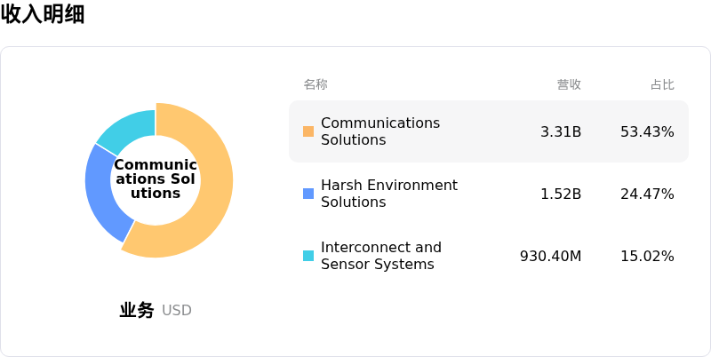 安费诺 (APH) 处于科技设备行业,最新年度营业收入23.09B,处于行业3,净利润4.27B,处于行业1。「公司简介」
