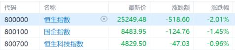 港股收评:恒指大跌2%,石油、黄金股大幅回调,电力设备股强势