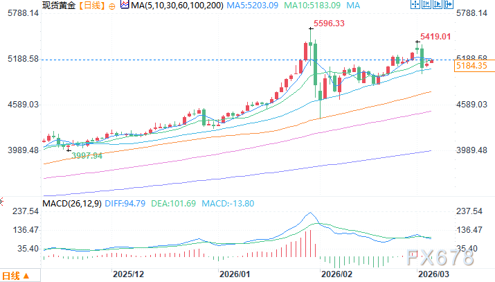 现货黄金 报 5182.35 美元/盎司