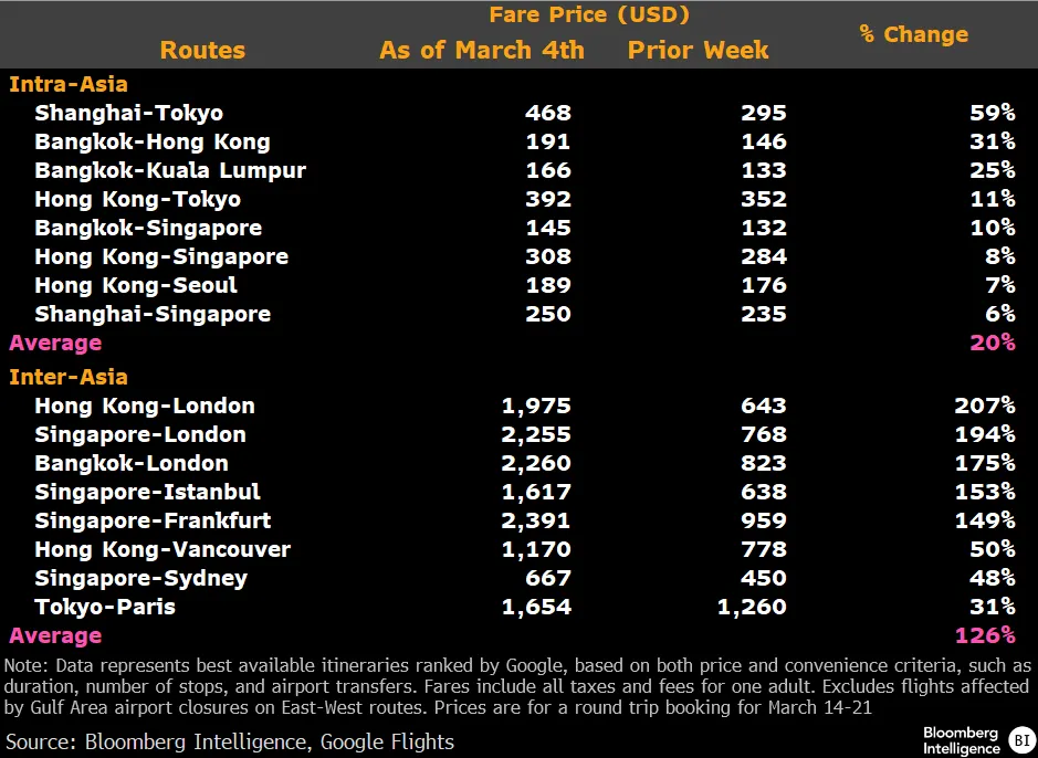航空咨询公司 BAA & Partners 创始人 Linus Benjamin Bauer 表示:“亚洲航司短期内可能同时受益于更高票价、更强的货运收益,以及温和的市场份额提升。但本质上这是客流的重新分配,并非全球航空网络发生结构性再平衡。”
