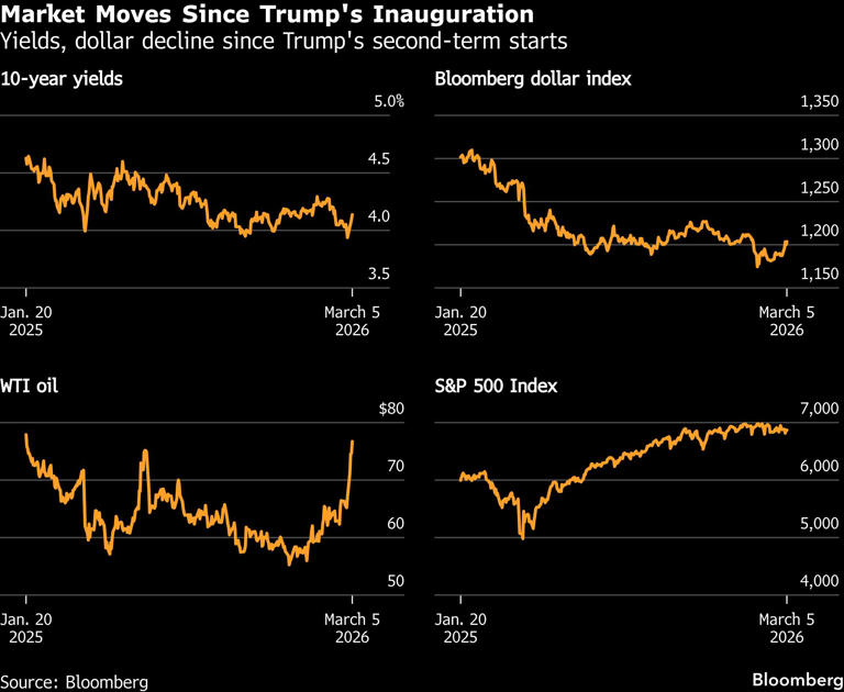 FX168财经报社(北美)讯 在与伊朗的冲突爆发之前,美国总统特朗普——无论是有意为之还是“恰逢其时”——似乎正在三个关键金融市场上得到他想要的结果:油价更低、美国国债收益率更低,以及美元走弱。