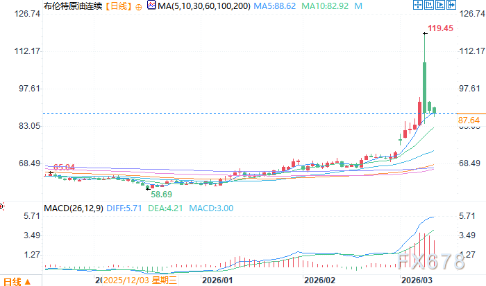 布伦特原油连续 报 88.22美元/桶。