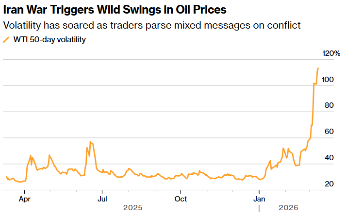 (伊朗战争引发油价剧烈波动 来源:彭博)