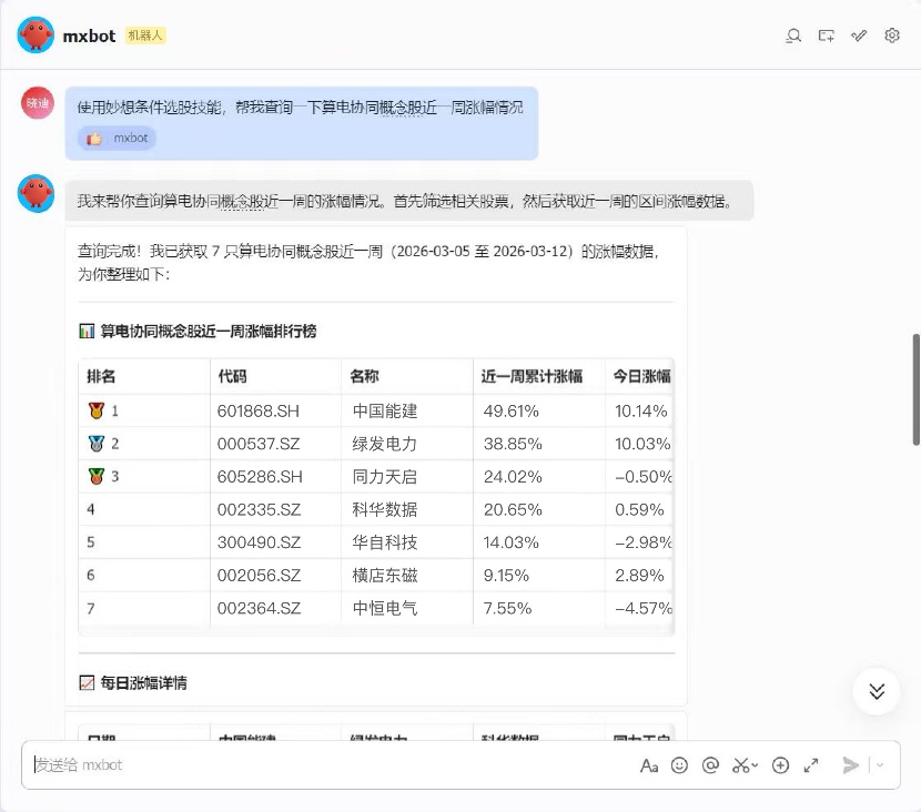 妙想借鉴专业投研逻辑,辅助用户深度分析,不再只是罗列信息,而是从变量拆解到逻辑推演,输出自带研报底色的深度洞察。