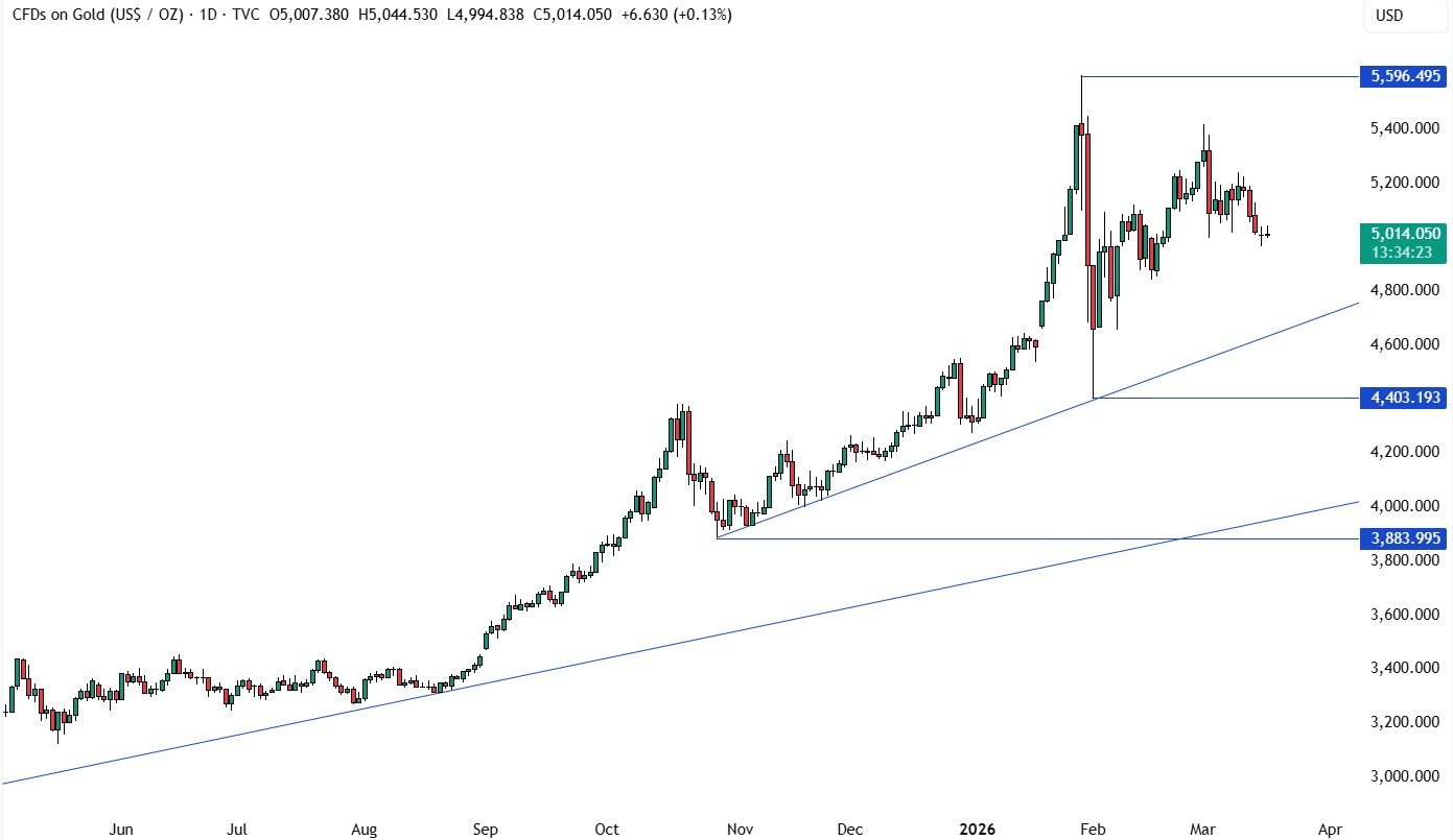 黄金昨日一度跌破近期窄幅区间下沿,周初走势偏弱,但随着美盘时段市场情绪改善,金价最终重新回到区间内部。当前市场焦点依然集中在美伊战争以及霍尔木兹海峡运输受扰问题上,但截至目前,局势并未出现实质性变化。