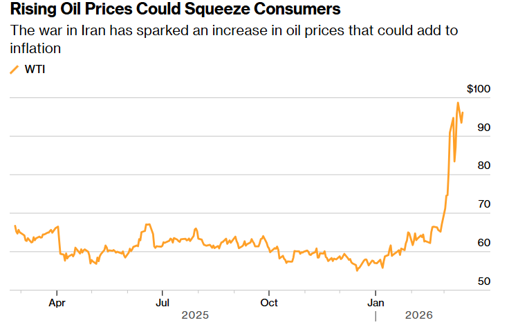 (油价上涨可能挤压消费者 来源:Nymex)