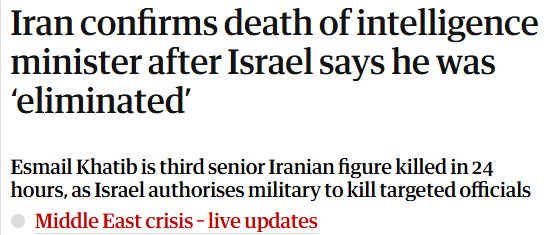 战火升级!伊朗确认情报部长身亡 24小时内三名高层接连遇袭,中东冲突步入更危险阶段