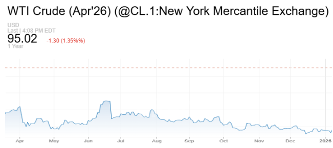 截至收盘,美国WTI原油期货下跌约0.2%,报每桶96.14美元,随后转而下跌;布伦特原油期货上涨约1.2%,收于每桶108.65美元,创下2022年7月以来最高收盘水平。