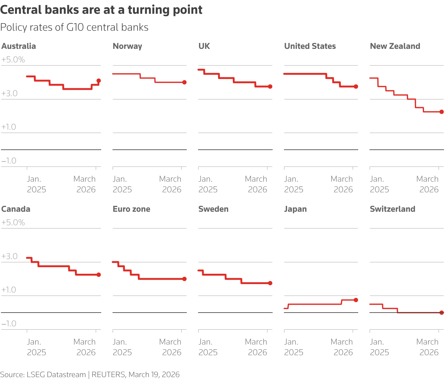 (G10各国央行政策利率走势 来源:路透)