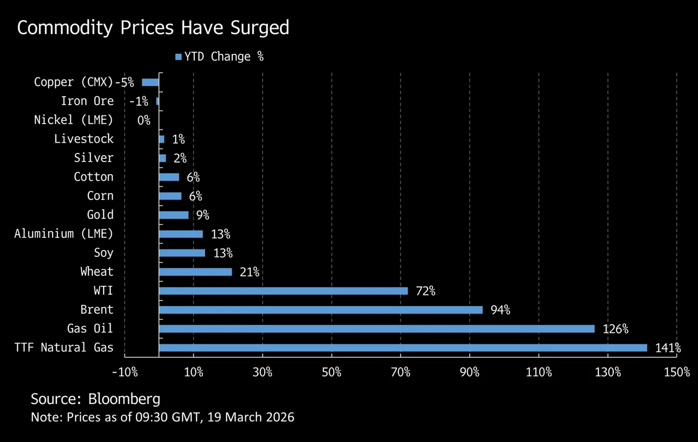 这一扰动已推动多数大宗商品价格显著上升,而且短期内迅速化解的可能性看起来不大。市场原本习惯将此类事件视为短暂的地缘政治冲击,但它实际上已经演变成一场真正的供给冲击。