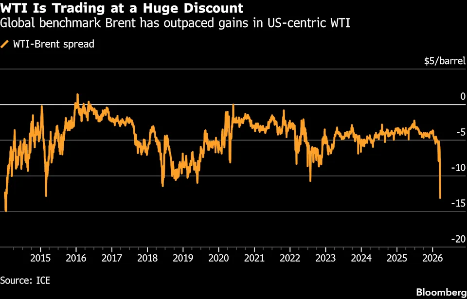 随着战争接近进入第三周尾声,全球原油基准布伦特原油本月累计涨幅已接近50%。霍尔木兹海峡几近完全关闭,导致大量供应滞留波斯湾,也迫使主要OPEC产油国削减产量。