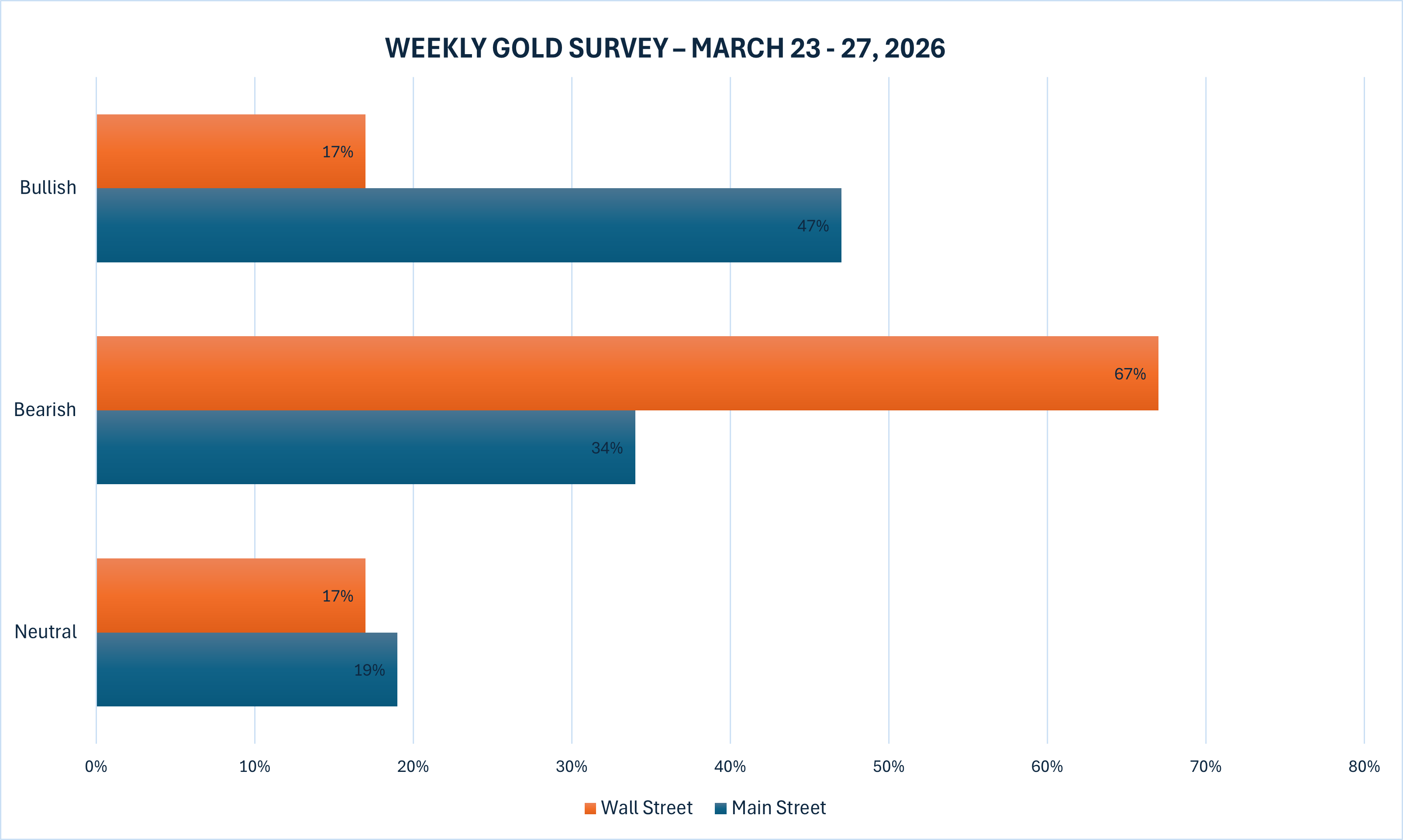 虽然从数据上看,散户中仍有相对更多的人看涨黄金,但与此前明显偏乐观的格局相比,市场信心已显著削弱。华尔街方面则更为一致地倾向谨慎,表明在当前利率、战争与流动性多重压力尚未缓解前,机构投资者普遍不愿贸然押注金价迅速反转。