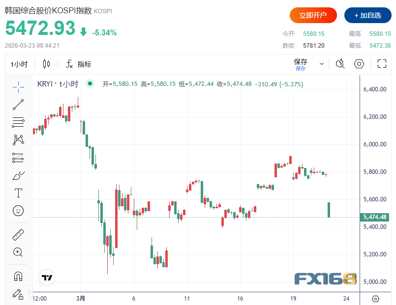 FX168财经报社(北美)讯 周一(3月23日),全球金融市场在高波动中开启新一周交易。随着美国与伊朗冲突进入第四周,且局势仍无缓和迹象,亚洲股市普遍下跌,美股股指期货与国际油价盘中剧烈震荡,美国国债承压,投资者继续消化中东局势升级对全球增长、通胀与政策路径可能造成的连锁冲击。