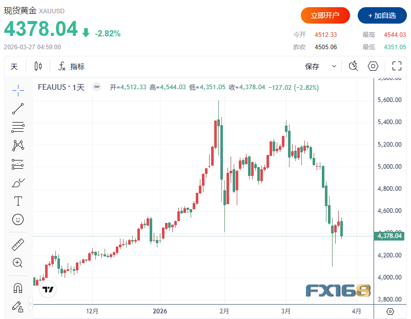 特朗普释放矛盾信号,黄金盘中跌向4350美元周四,黄金价格延续跌势。现货黄金收盘下跌127.02美元,跌幅2.82%,收报4378.04美元/盎司。金价盘中自4544美元高点快速回落,一度触及4351.02美元低点,显示市场情绪明显偏空。