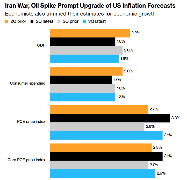 (伊朗战争与油价飙升促使美国通胀预测被上调来源:彭博)
