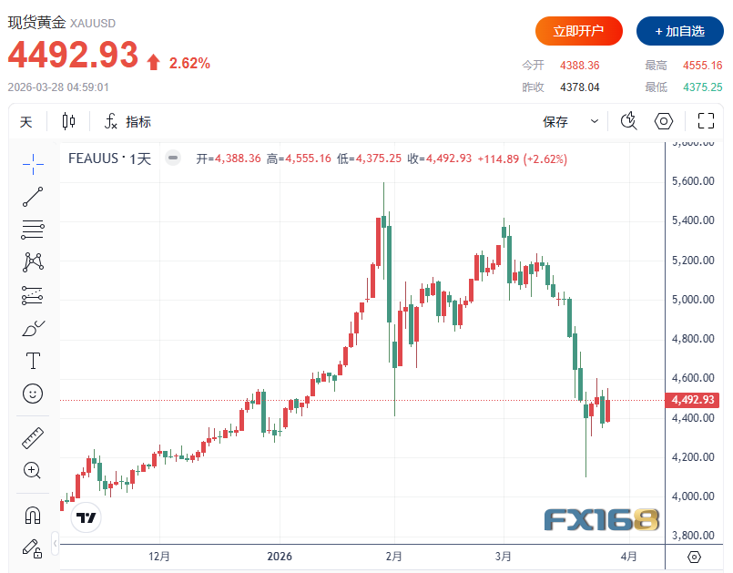 FX168财经报社(北美)讯 在经历连续数周下跌后,黄金市场本周终于迎来明显修复。随着中东局势持续紧张、市场避险情绪升温,黄金周五(3月27日)大幅反弹并一度突破4550美元。尽管当前金价回升为市场带来一定乐观情绪,但油价高企、美元走强、美债收益率上升以及央行售金风险等多重因素仍在交织,令黄金后市前景依旧充满分歧。