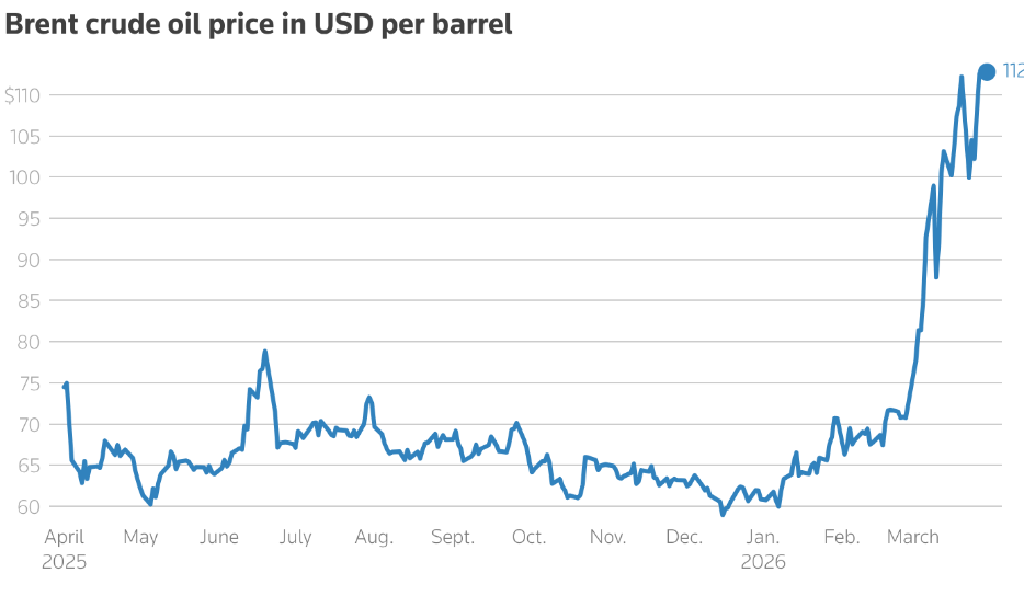 不过,霍尔木兹海峡关闭的时间越长,能源价格就会维持在越高水平。席卷全球的能源危机使布伦特原油期货有望在3月录得创纪录的月度涨幅,涨幅超过50%。