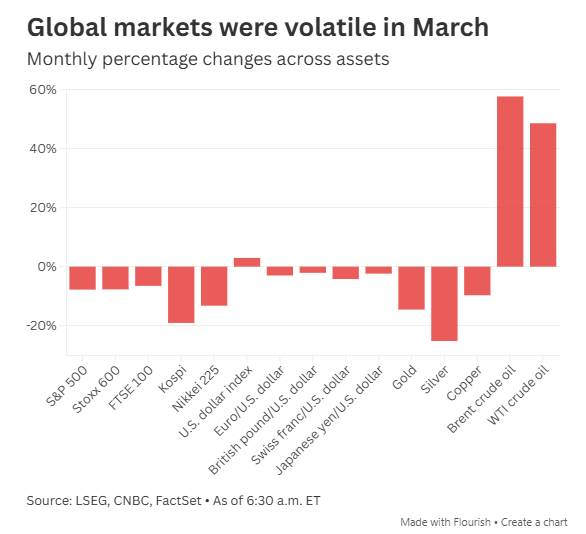 FX168财经报社(北美)讯 随着美伊冲突持续发酵,全球金融市场正经历一轮罕见的“全资产波动”。过去一个月,从股市到债市、从汇率到大宗商品,几乎所有主要资产类别均出现剧烈震荡甚至明显下跌。市场普遍担忧,能源冲击叠加通胀上行风险,正推动全球经济向“滞胀”方向演变,而这一风险仍未被充分计入当前资产价格。
