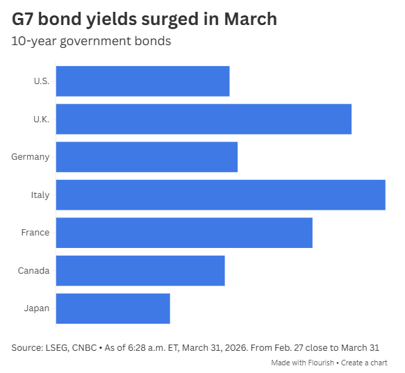 债市:收益率飙升,市场重新定价加息预期债券市场同样出现显著调整。随着投资者重新评估通胀路径与货币政策,发达市场国债遭遇抛售,收益率持续上升。