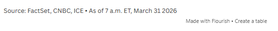 由于对能源高度依赖,欧洲与亚洲经济体对油价上涨更加敏感。例如,韩国KOSPI指数作为2025年表现最强的市场之一,在3月却大幅下跌近20%,凸显能源冲击对市场的放大效应。欧洲股市大幅收跌,欧洲STOXX 600指数3月份累跌约7.8%,欧洲斯托克50指数累跌约9.3%,英国富时100指数累跌6.7%,法国CAC40指数累跌8.9%,德国DAX30指数累跌10.3%。