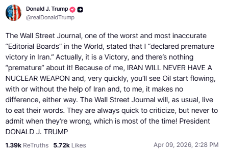 除了向伊朗施压外,特朗普还将矛头指向《华尔街日报》编辑委员会。此前该报评论称,特朗普过早宣布对伊朗“取得胜利”。对此,特朗普反驳称:“这本来就是一场胜利,而且根本谈不上‘为时过早’。”