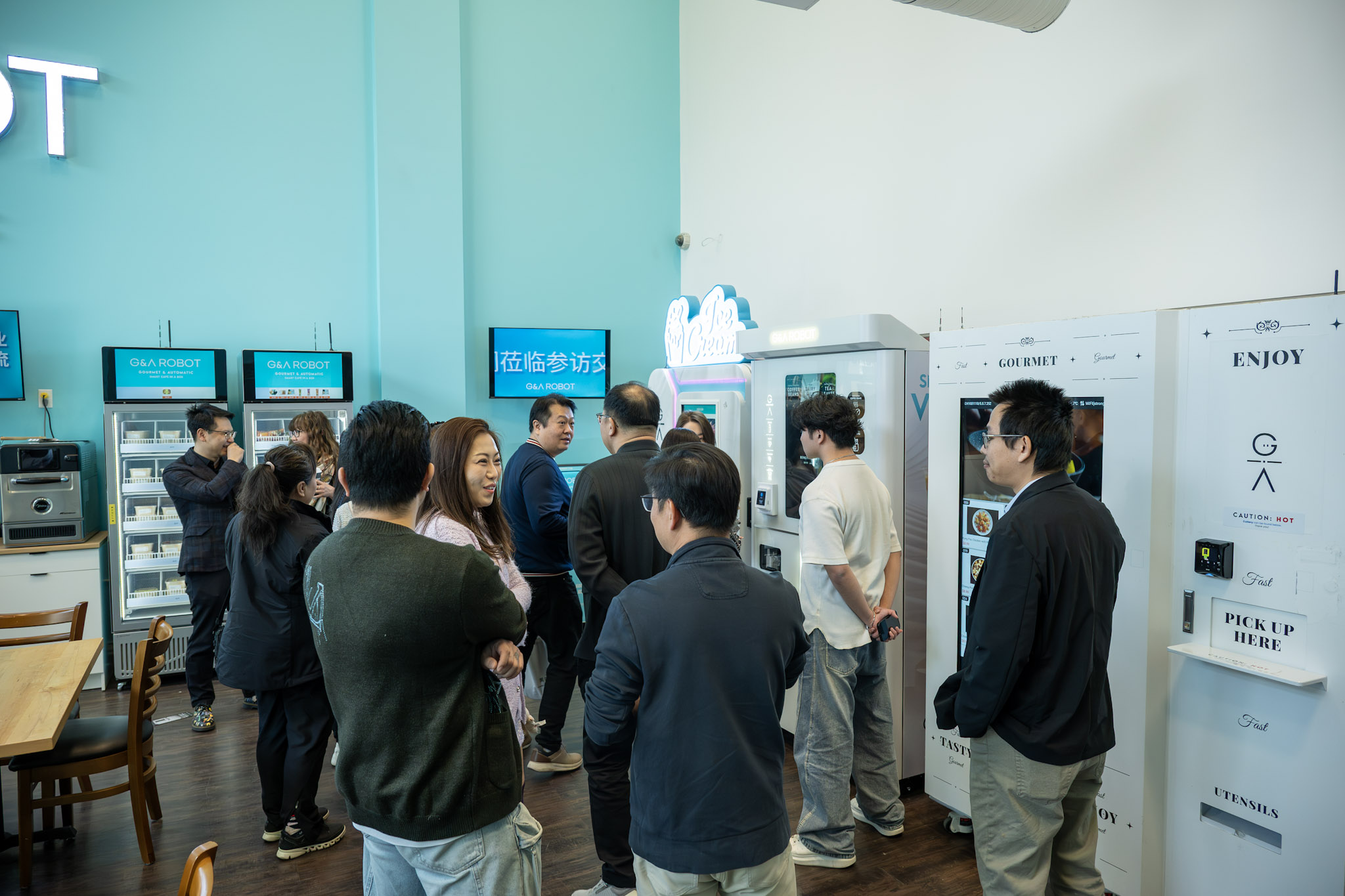 走进企业可以看到,G&A Robot打造的并不是单一设备,而是一整套面向未来的智能餐饮解决方案。从智能饮品机、便当机、软冰淇淋机,到果昔机、迷你咖啡机、智能储物柜,企业正围绕“吃、喝、取、用”不断拓展产品矩阵,构建高效、便捷、稳定的智能消费生态。