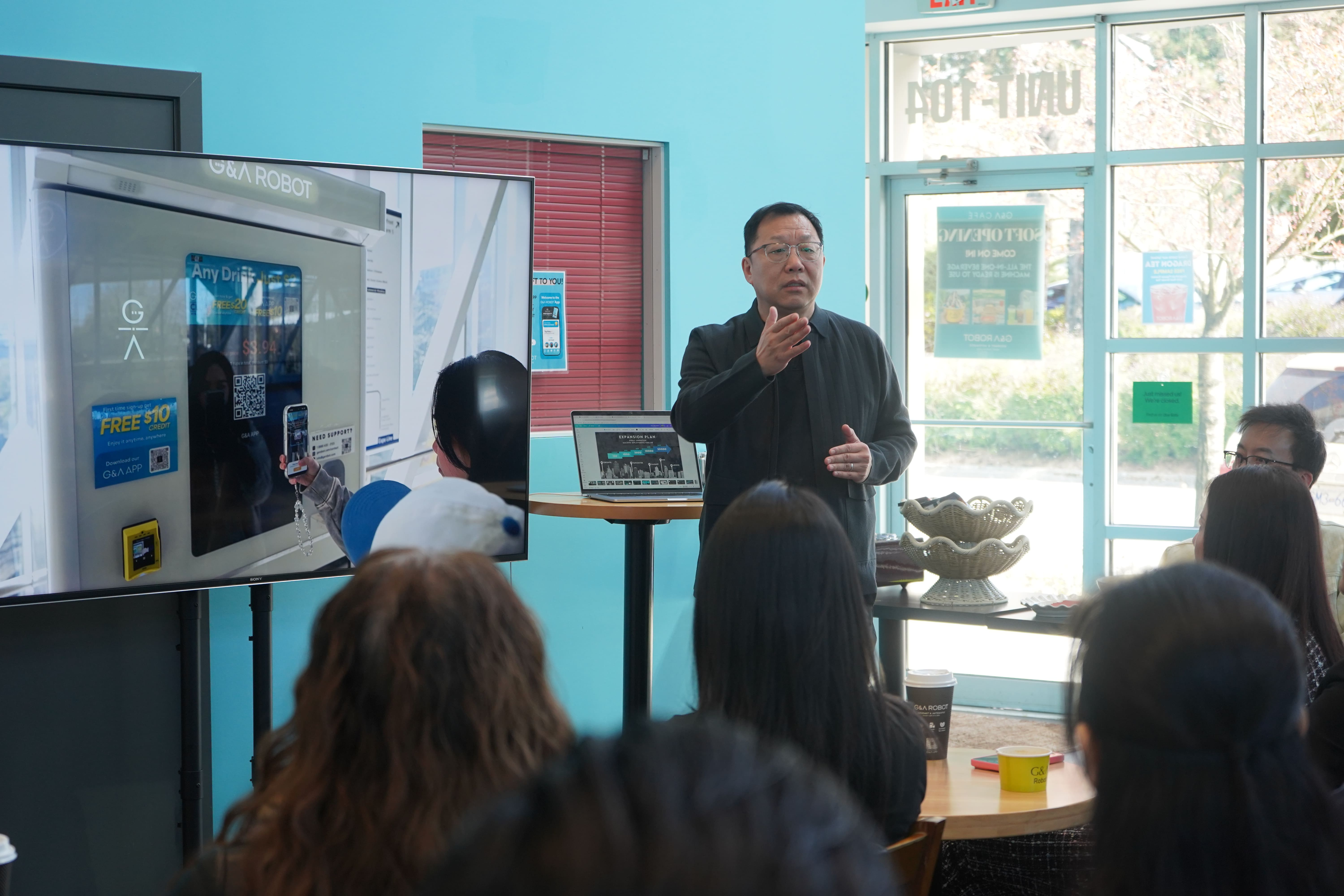 活动中,G&A Robot CEO Leo Li介绍了公司的产品体系、合作伙伴及未来发展规划。目前,G&A Robot已在大温地区部署150台设备,覆盖天车站、码头、大学校园、医院及工业区等高频场景。与此同时,公司在美国的第一家设备也已顺利落地,未来还将进一步进军洛杉矶、西雅图、纽约等城市,并持续拓展多伦多、卡尔加里及墨西哥市场。