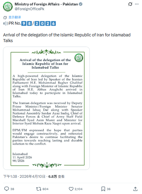 白宫确认美伊巴三方“面对面”会谈!伊朗抛出四项“不可谈判条件”,伊斯兰堡谈判或延长一天