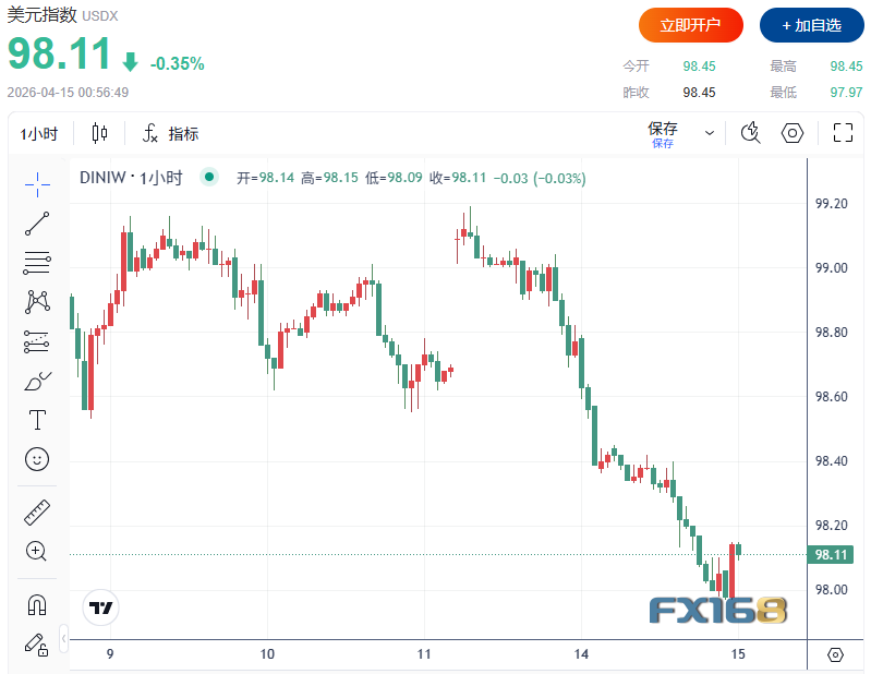 美元连续走软,市场押注外交缓和与降息预期再平衡汇市方面,美元继续承压。由于投资者开始为中东局势可能出现外交突破进行布局,美元周二逼近连续第七个交易日下跌。美元指数下跌0.3%,至98.11附近,接近3月2日以来最低水平,也就是美以对伊朗战争爆发后首个交易日以来的低位区域。