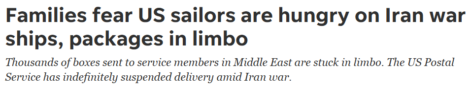 FX168财经报社(北美)讯 随着伊朗冲突持续,美国部署在中东的部分军舰正面临越来越明显的后勤压力。多名军人家属反映,前线士兵不仅餐食数量有限、质量下滑,就连来自国内的补给包裹也因军事邮政服务暂停而无法送达。对于长期在海上执行任务的官兵而言,这场战争带来的压力,正在从战场延伸到最基本的生活保障层面。