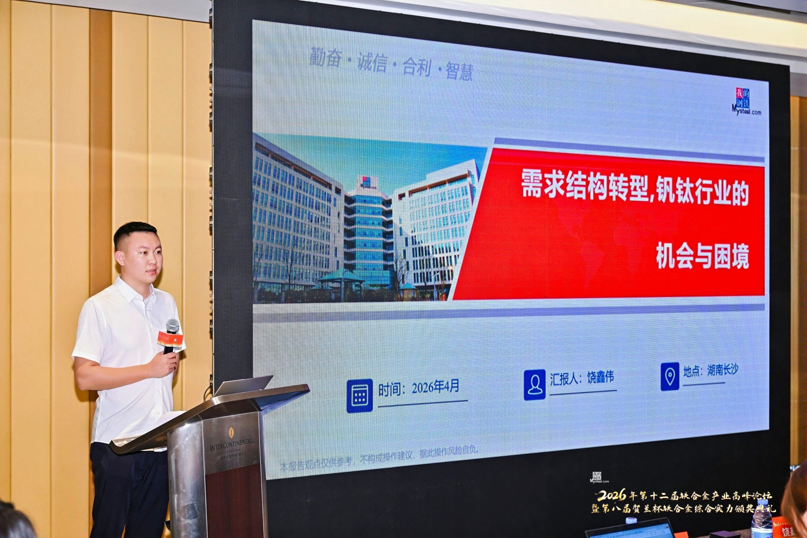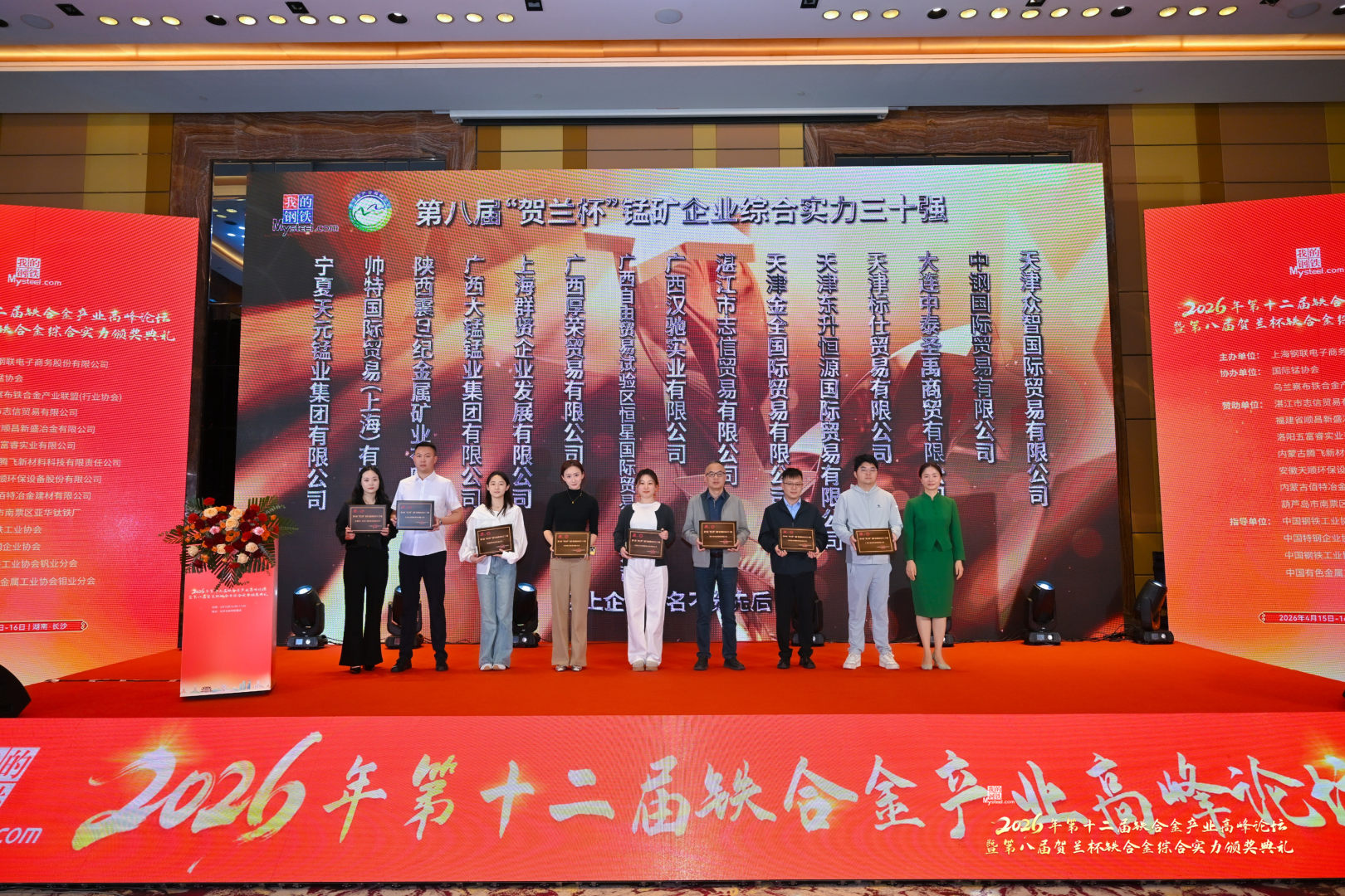 2026年第十二届铁合金产业高峰论坛暨第八届贺兰杯铁合金综合实力颁奖典礼于2026年4月15日至4月16日在湖南长沙盛大召开,本次会议由上海钢联电子商务股份有限公司(我的钢铁网)主办,国际锰协会,乌兰察布铁合金产业联盟(行业协会)协办,获中国钢铁工业协会、中国特钢企业协会、中国钢铁工业协会钒业分会、中国有色金属工业协会钼业分会指导。