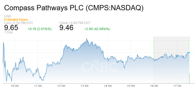 受这一消息推动,周一开盘后迷幻药板块迅速走强。涨幅居前的个股和相关产品包括:COMPASS Pathways一度上涨50%,AtaiBeckley上涨33%,GH Research PLC上涨30%,AdvisorShares Psychedelics ETF上涨12%。