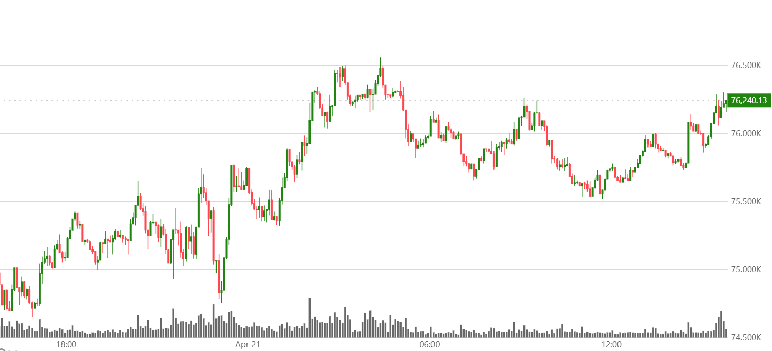 FX168财经报社(亚太)讯 周二(4月21日)比特币重新站上7.5万美元关口,因市场开始计入新一轮外交缓和的可能性。据报道,美国副总统万斯将于美东时间21日上午启程赴巴基斯坦,与伊朗展开新一轮停火谈判。
