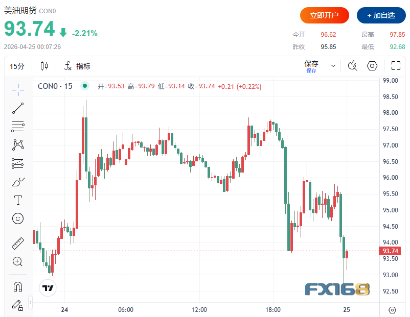 与此同时,原油价格加速下跌,WTI原油向下触及95美元/桶,日内跌幅扩大至4.34%。
