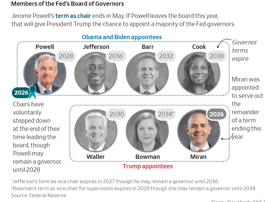 特朗普在第一任期内任命了两名现任美联储理事——Michelle Bowman和Christopher Waller,并有望通过沃什填补第三个席位。如果特朗普再获得鲍威尔的席位,政府将在七人理事会中拥有实际多数。