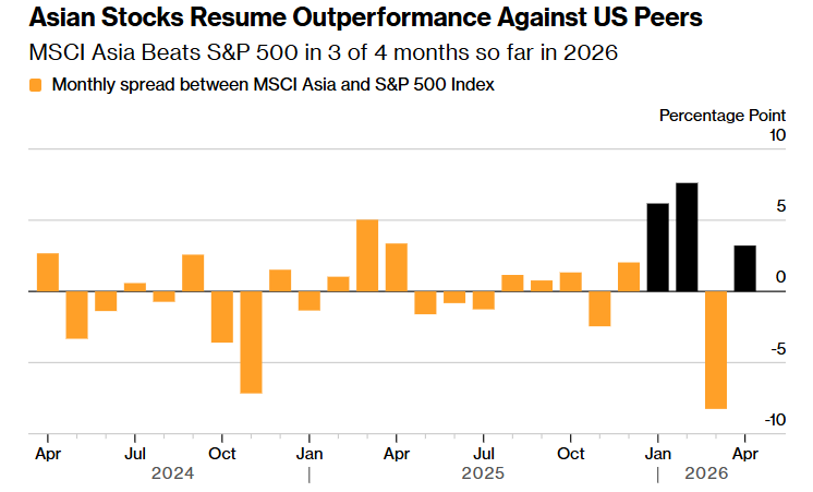 FX168财经报社(亚太)讯 随着市场对亚洲在人工智能热潮中核心地位的信心增强,投资者正重新采用战前交易逻辑,即押注亚洲股市表现将优于美国同行。