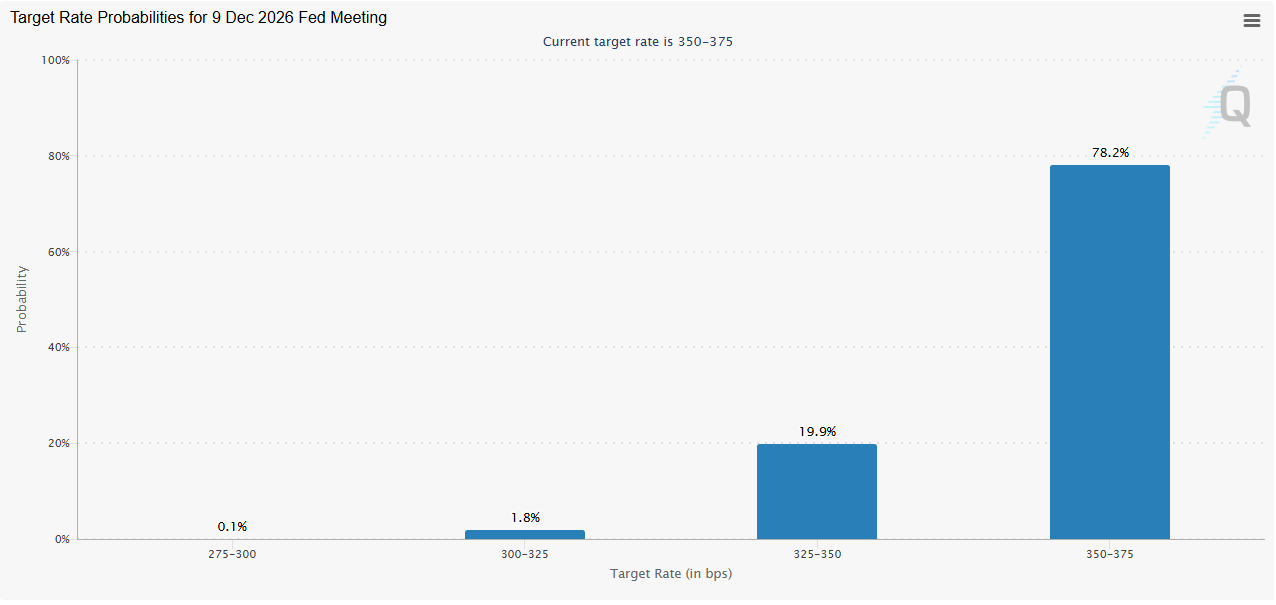 交易员和经济学家高度确信,美联储将把利率维持在3.50%至3.75%区间。